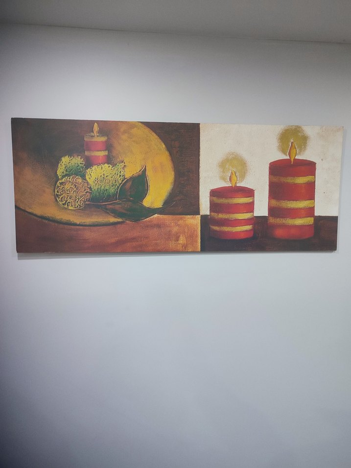 97/38 cm ölçülerinde Kırmızı şeritli yanan mumlar ve doğal objelerin yer aldığı tablo, sıcak ve samimi bir atmosfer yaratır. ️