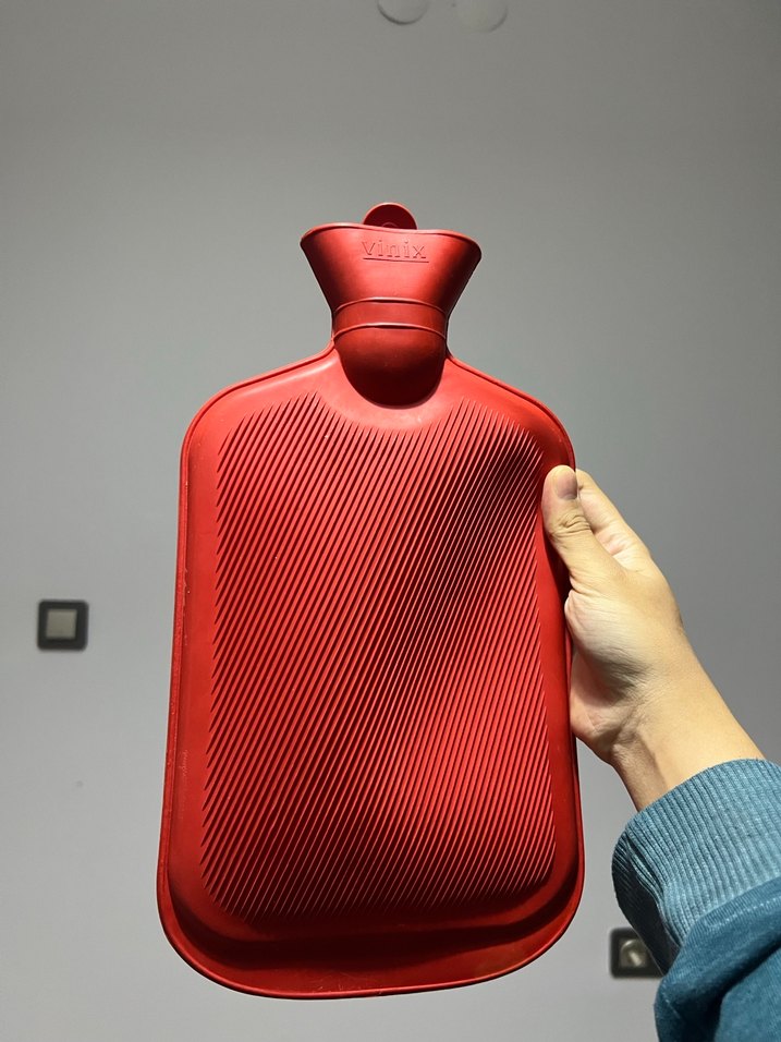 Kırmızı sıcak su torbası, kolay tutuş için dokulu yüzeye sahiptir ve güvenilir ısı sağlar. Rahatlık için uygundur.