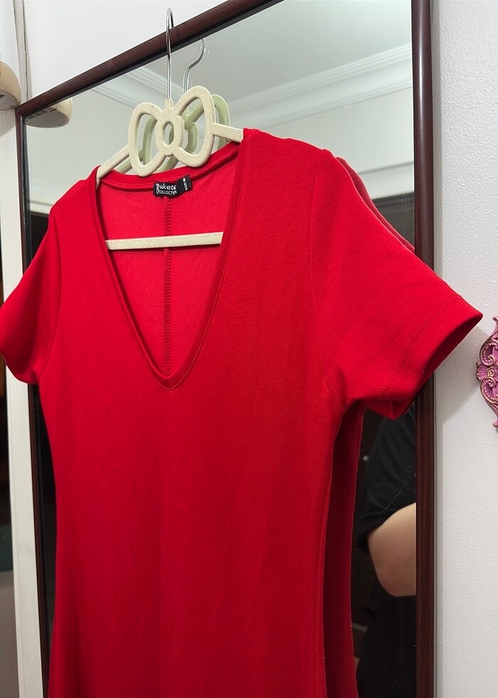 Marka temsilidir ürünüdür Kumaş kalitesine hayran kalacağınız bir elbise diz altı boyunda yırtmaçlı v yaka likralı pamuk gibi bir kumaş çok rahat ama çok şık bir elbise kumaş kalitesi anlatılmaz görülür