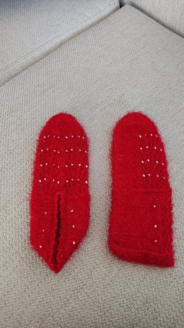 Kırmızı renkli ve simli patik. Ayak boyu 27 cm