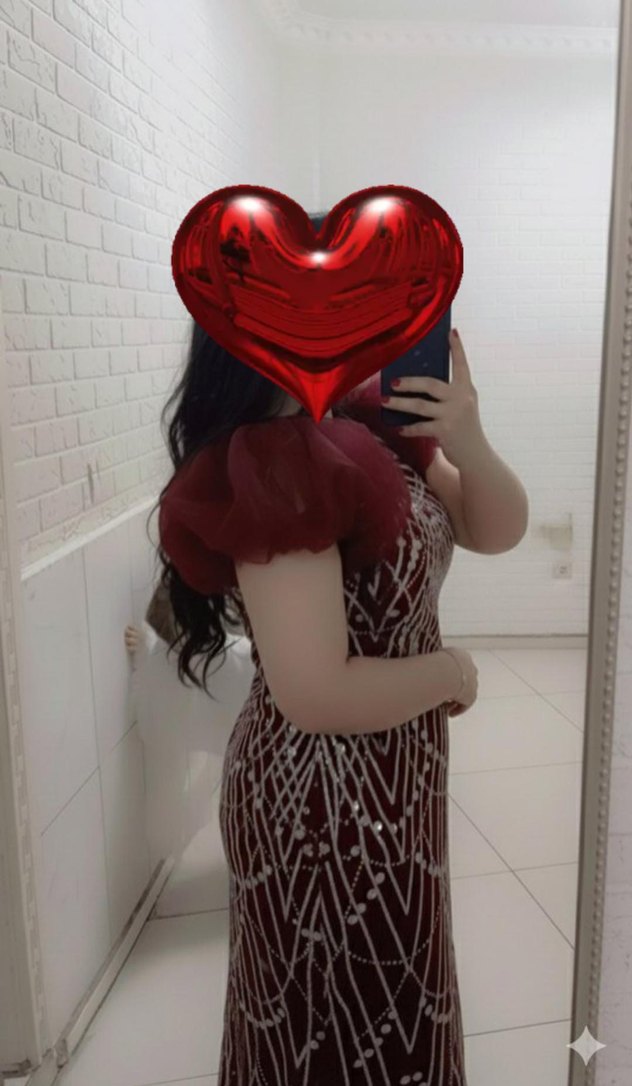 Koyu kırmızı renkte, simli ve desenli detaylara sahip, V yakalı ve uzun boy balon kolu oturan abiye elbise. Cesur ve göz alıcı tarz için uygun. ✨