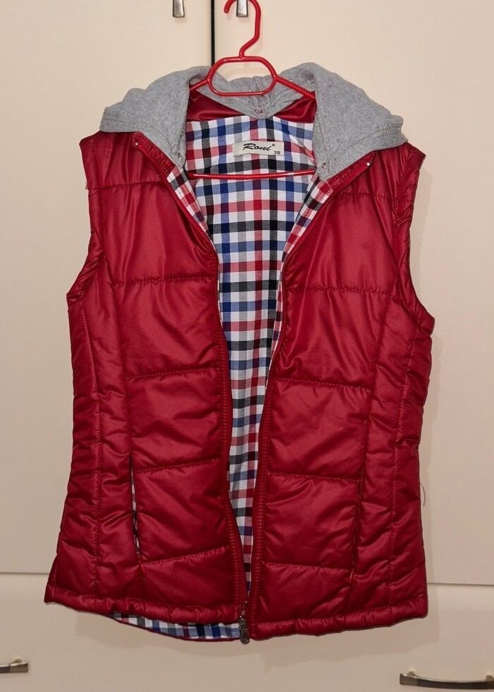 Gri kapüşonlu şişme yelek