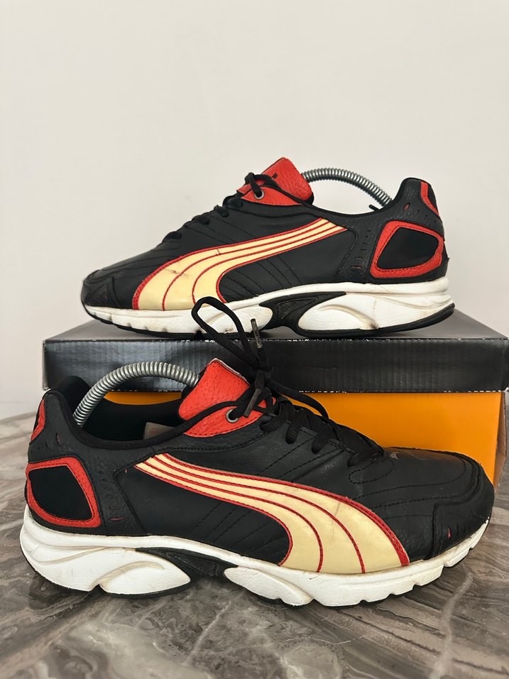 Bağcıklı, koyu kırmızı ve siyah renkte erkek spor ayakkabısı, kauçuk tabanlı, spor ve sokak giyimine uygun.