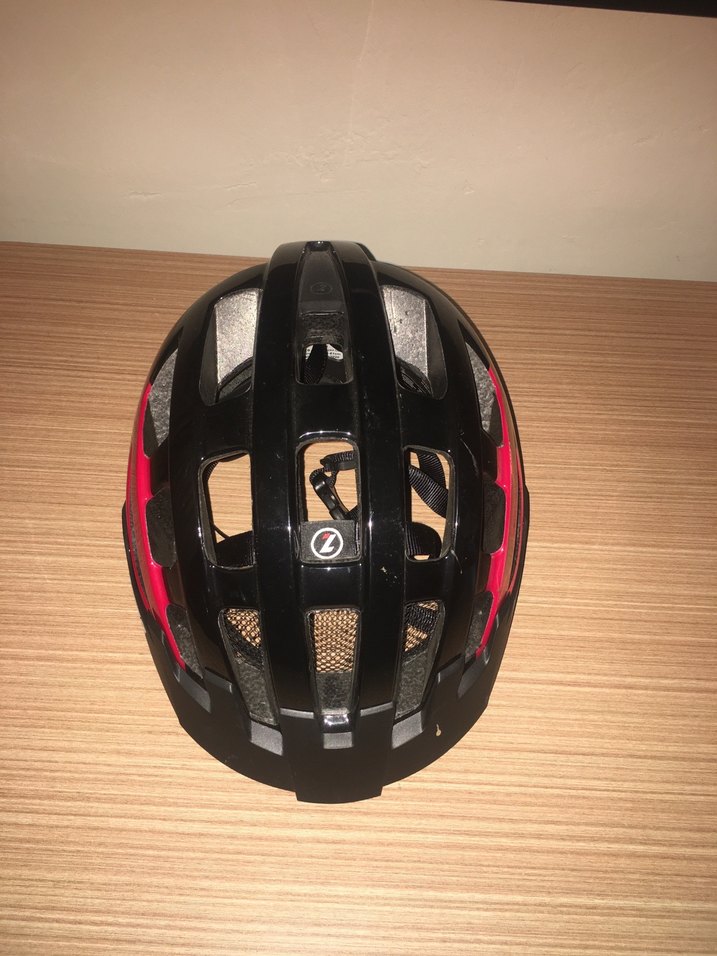 Kırmızı ve siyah plastikten yapılmış, Velcro ayarlı biker motosiklet kaskı. Düz, desen içermeyen tasarımıyla rock punk havası verir. ️