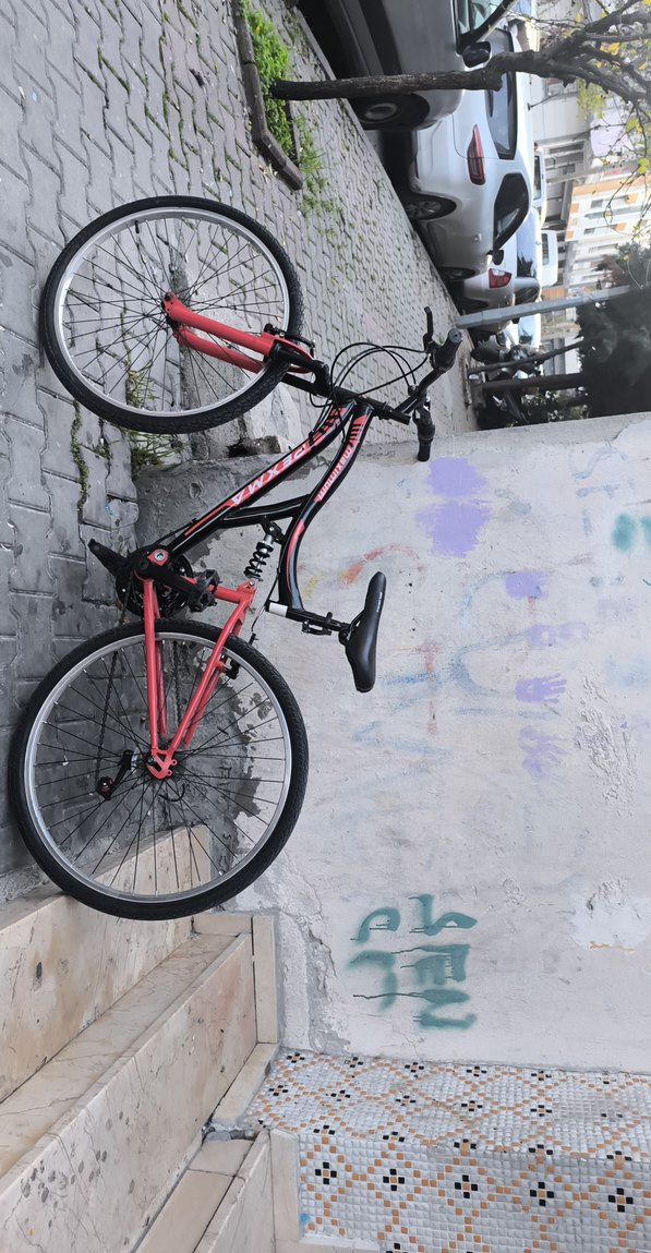 Kırmızı renkli, sağlam çerçeveli ve renkli tasarıma sahip Rahat sele ve dayanıklı lastiklere sahiptir.