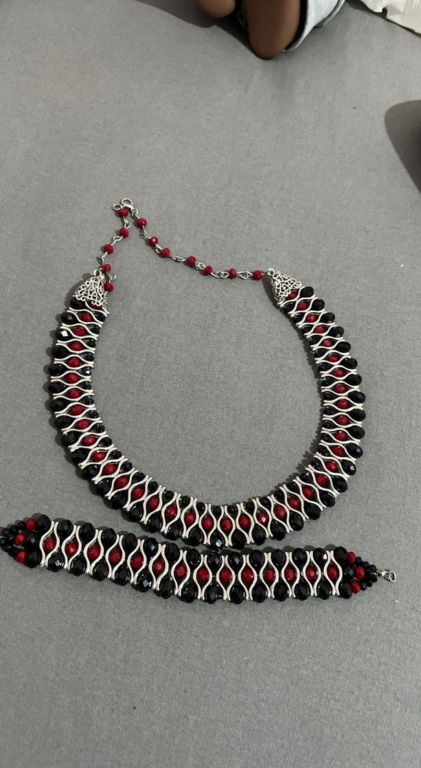 Kırmızı Siyah Boncuklu Yılan Desenli Gotik Kolye
