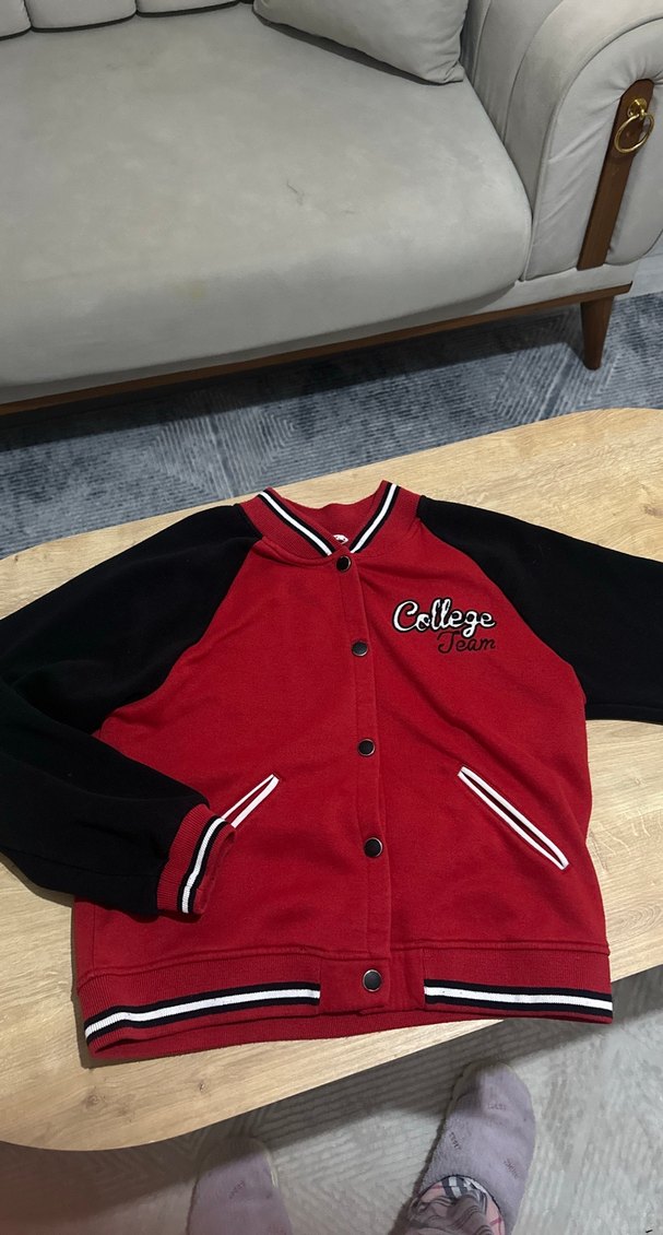 Yumuşak dokulu, düğmeli ve bisiklet yaka uzun kollu spor ceket. Koyu kırmızı gövde ve siyah kollarda "College" baskısı bulunur. Arkada “Bronx” baskısı bulunur.Rahat ve salaş kesim.