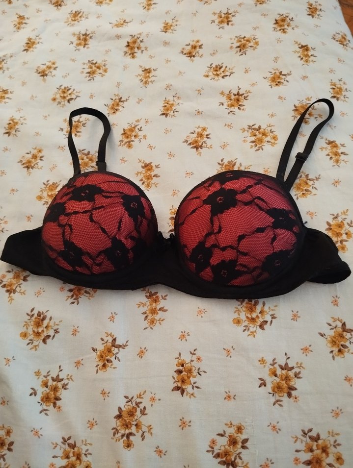 Kırmızı Siyah Dantel Desenli Gotik Sütyen