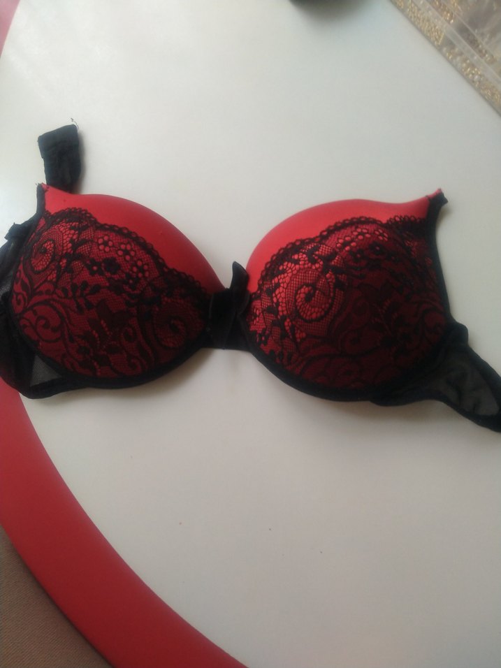 Turuncu değil. Koyu kırmızı sütyen, siyah dantel desenleriyle gotik tarzda, koyu ve göz alıcı görünüme sahip, normal uzunlukta.Aski takabilirsiniz. 80 beden.İci yarım dolgulu.