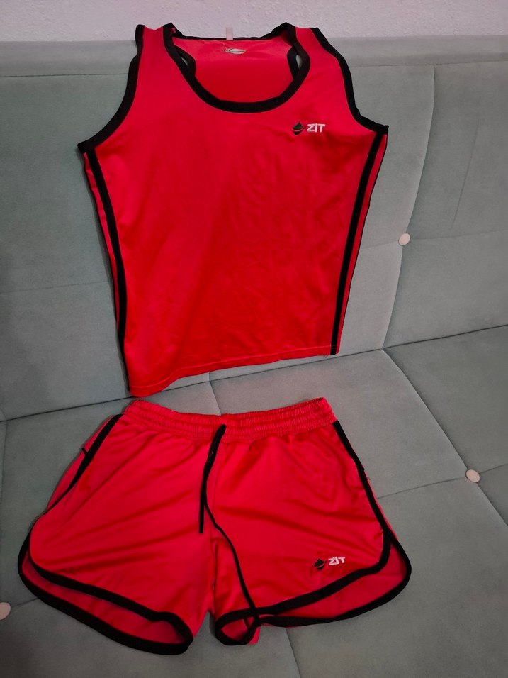 Kadınlar için kırmızı, siyah detaylı, askısız ve kısa kollu üst ile şortlardan oluşan, rahat sentetik kumaştan yapılmış spor takımı. Cesur sokak stili için uygundur. ♀️ tenis takımı olarak alındı sayili kullanildi temiz urun
