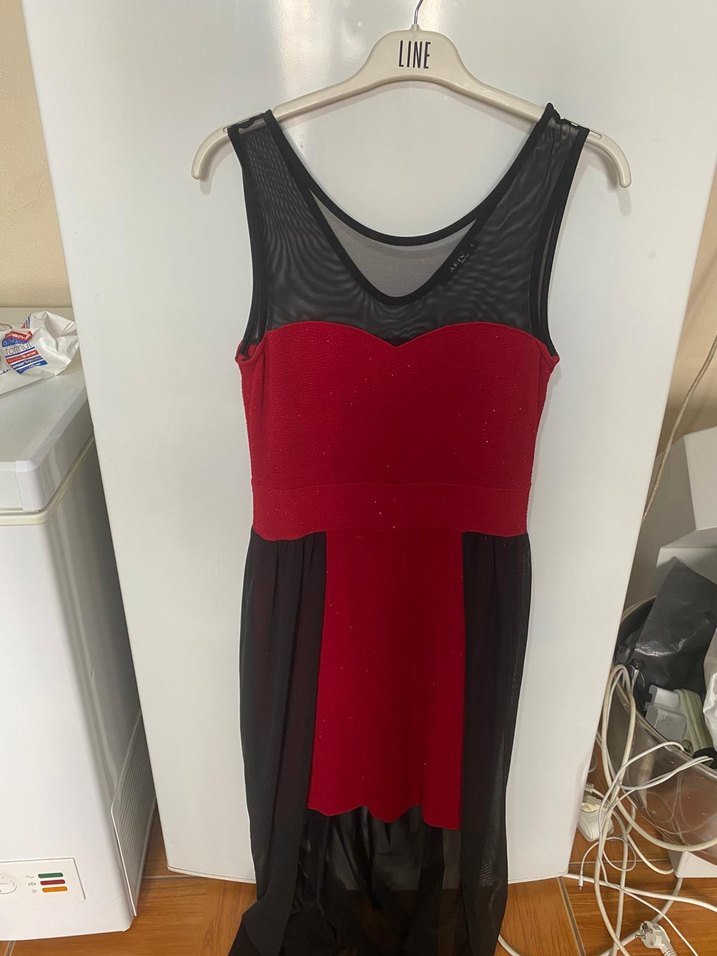 Kırmızı Siyah Drapeli Uzun Abiye Elbise - Görsel 1