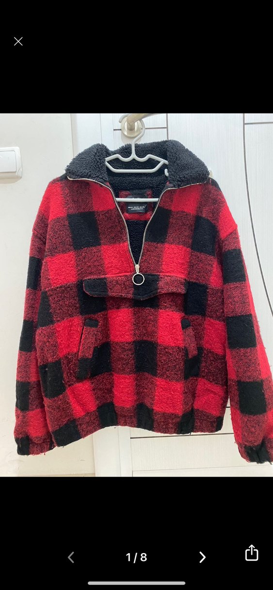 Kırmızı Siyah Ekose Kadın Peluş Ceket Bershka