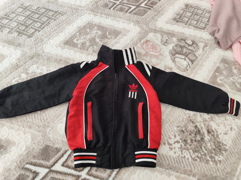 Kırmızı siyah renklerde, fermuarlı ve yüksek yakalı, yumuşak ve sıcak kumaştan erkek çocuk ceket. Baskılı çizgilerle sokak tarzı görünüm sağlar.