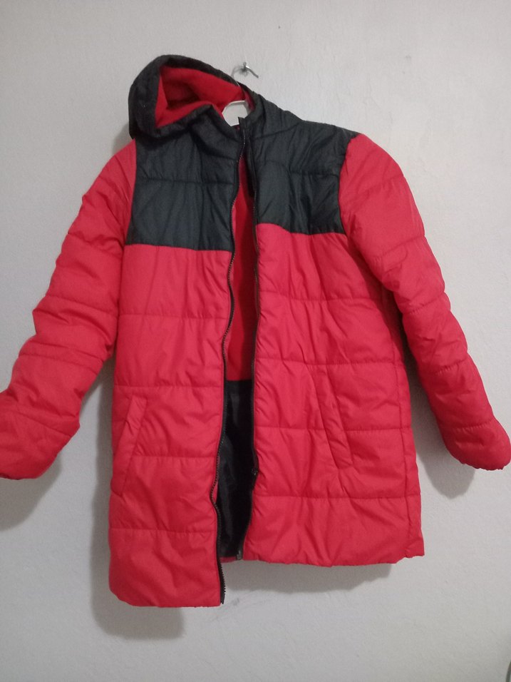 Kırmızı Siyah Fermuarlı Kışlık Mont