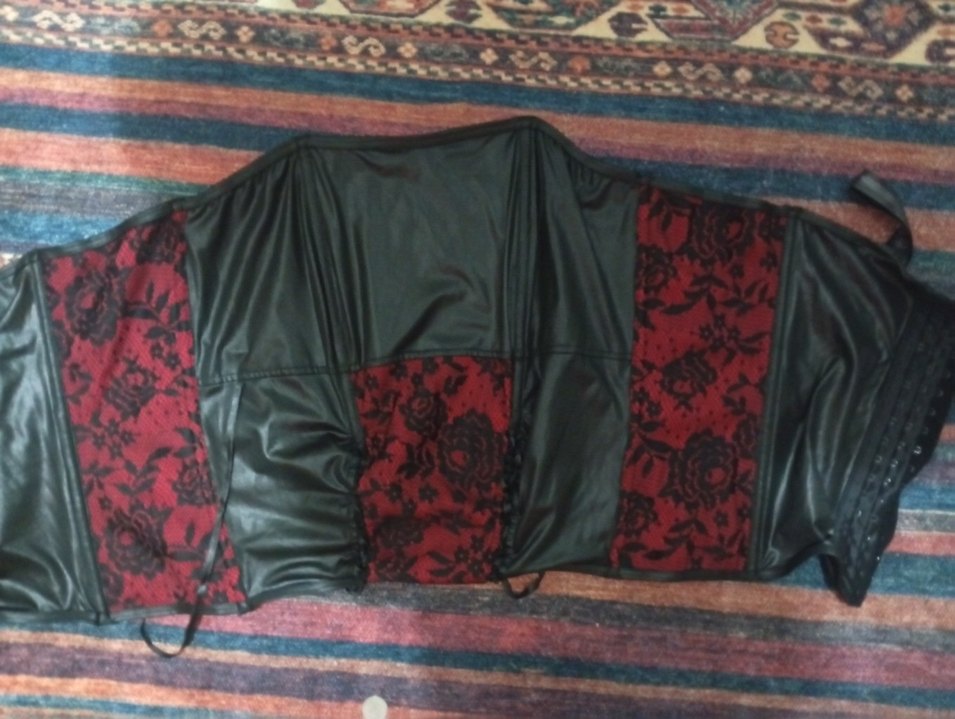 Kırmızı siyah renkte sentetik kumaştan yapılmış hiç giymedim