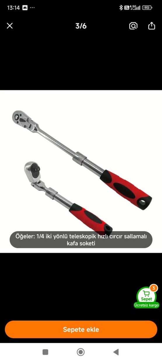 Kırmızı siyah renkli, 1/4 iki yönlü teleskopik hızlı cırcır kafa soketi, vidalama işlemleri için uygundur. Teleskopik uzatılabilir 360 derece döner