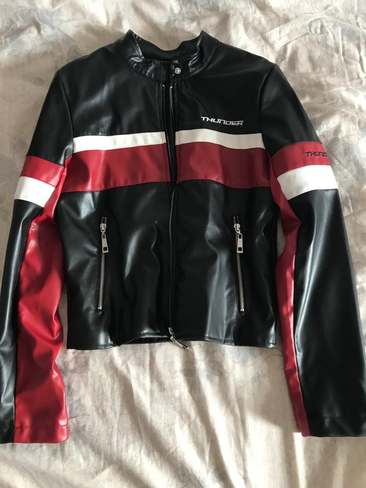 Kırmızı Siyah Kadın Deri Biker Ceket