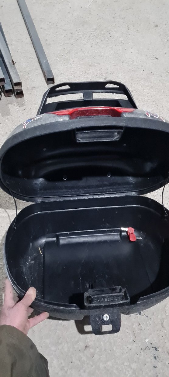 Geniş iç hacimli, güvenli kilit mekanizmalı koyu kırmızı taşıma kutusu.