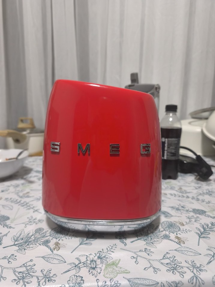 Bu SMEG seti, canlı kırmızı bıçak bloğu, çeşitli bıçaklar oluşur.