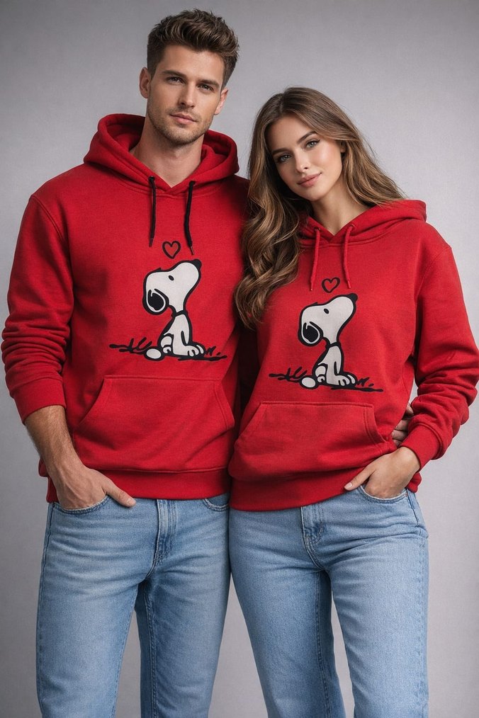 Yumuşak ve sıcak polar kumaştan, renkli Snoopy baskılı kırmızı kapüşonlu sweatshirt. Rahat kesim ve uzun kollu, rahat ve şık bir görünüm sunar. ❤️