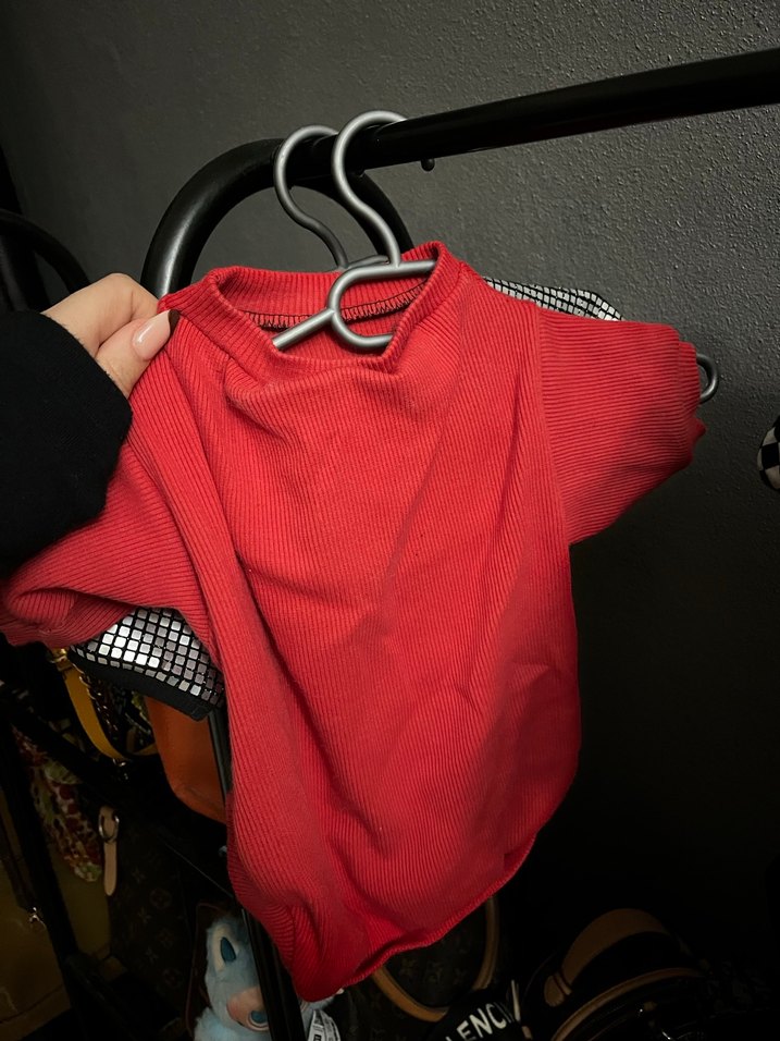 Kırmızı desen içermeyen sokak stili köpek kıyafeti. 4 kg pomeian gitmişti esnektir temiz defpsuz