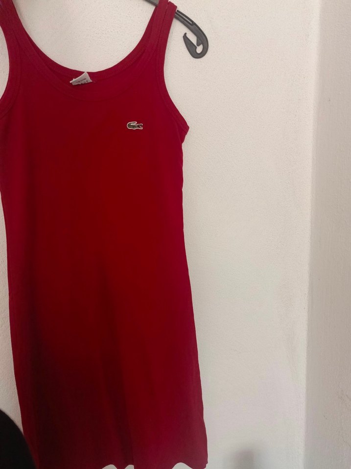 Koyu kırmızı, kolsuz ve midi boyda, balıkçı yaka spor elbise. Sentetik kumaştan, rahat ve şık, günlük kullanım için uygun.