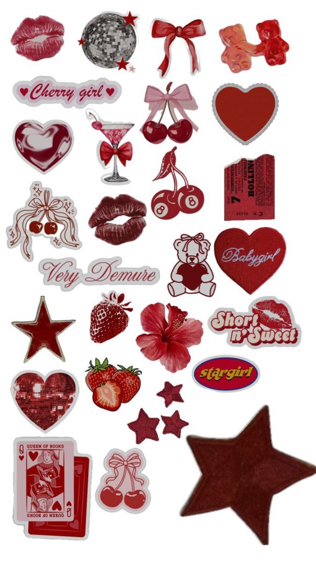 aycıklı yıldızlı çilekli öpücüklü Kirazlı kalpli sticker
