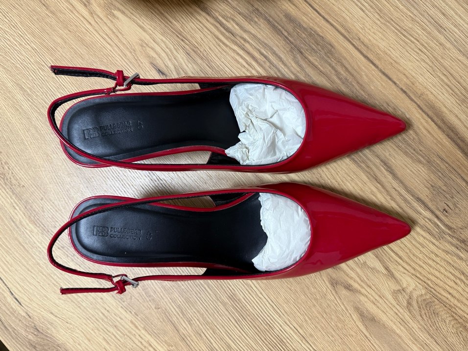 Kırmızı renkte tokalı, stiletto topuklu kadın ayakkabısıdır. Düz ve şık tasarımıyla romantik akşamlar için uygundur. Modern ve çağdaş bir görünüme sahiptir.