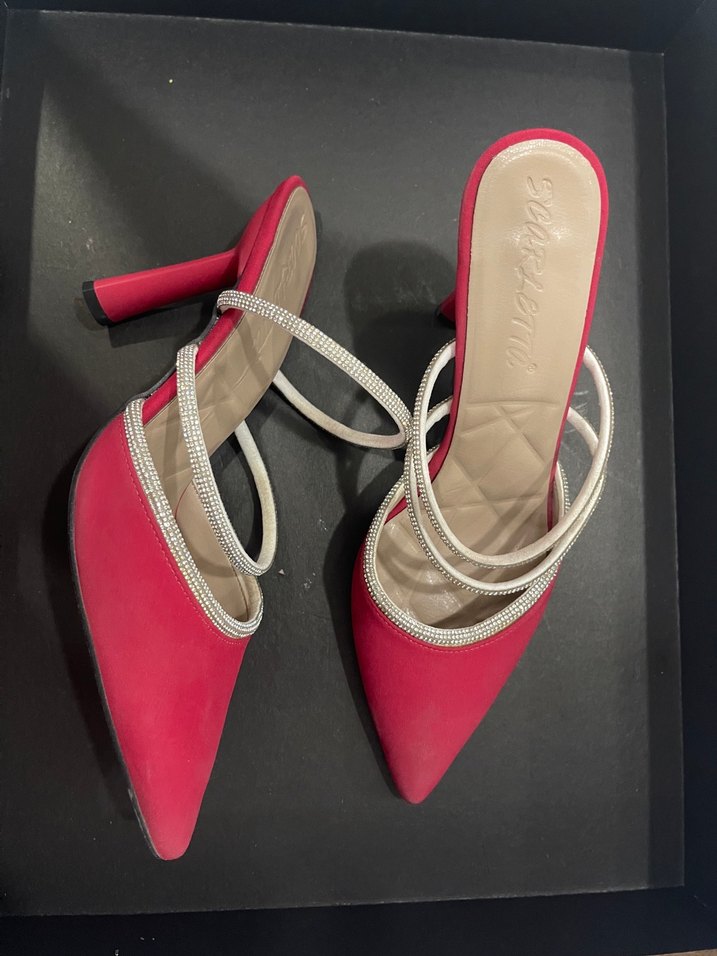 Pembe renkli, yılan desenli ve elastik bantlı stiletto topuklu kadın ayakkabısı. Cesur ve çağdaş bir tarz sunar, romantik akşamlar için uygundur. Sadece 1 defa giyildi