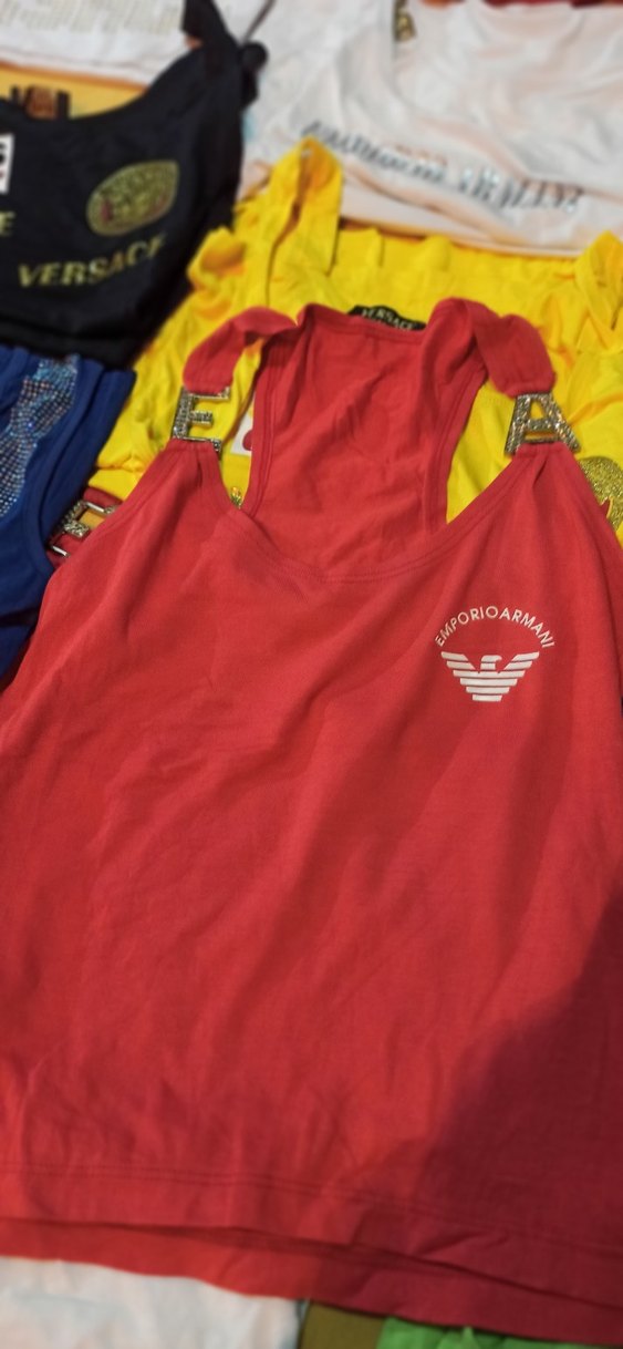 Kırmızı straplez, vücuda oturan atlet. Emporio Armani baskılı, yumuşak sentetik kumaştan. Spor ve günlük şıklık için ideal, rahat ve şık bir görünüm sunar. ♀️