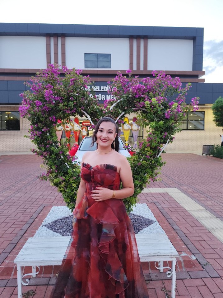 Bordo, straplez, drapeli ve bağlamalı desenli, bohem tarzda uzun ve vücuda oturan abiye elbise. İnce askılar zarafet katıyor.