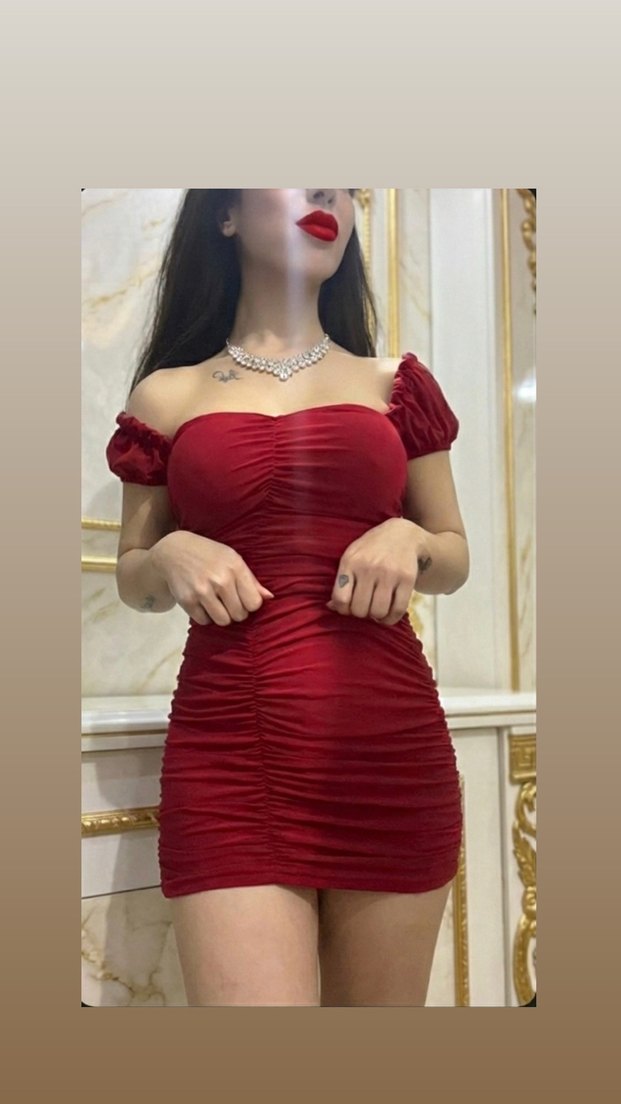 Kırmızı, drapeli detaylara ve askılı kollara sahip dar kesim mini elbise, romantik akşamlar için parlak ve iddialı bir görünüm sunar.