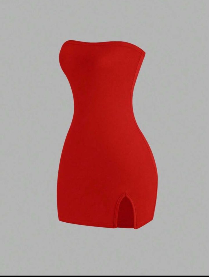 kırmızı straplez yırtmaclı elbise. yazlık kumas. yırtdısından yeni alınmıştır ve hic giyilmemiştir. s beden.