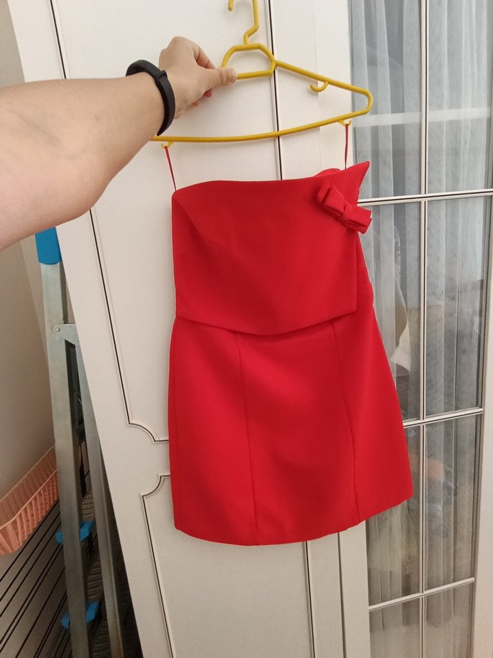 Kırmızı straplez elbise