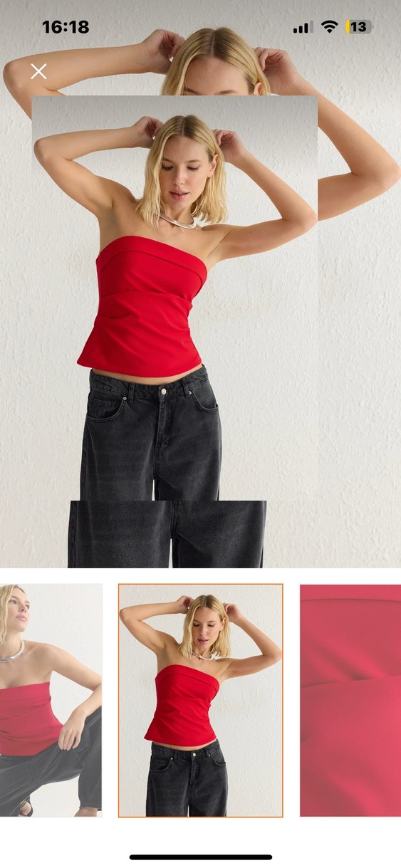 Kırmızı Straplez Mini Denim Bluz