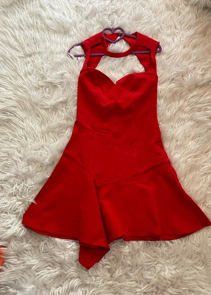 Resimde görüldüğü gibidir elbisenin iç kısmında belli belirsiz leke var kullanıma engel değil marka temsili göğüs:80 bel:70 boy:85 cm