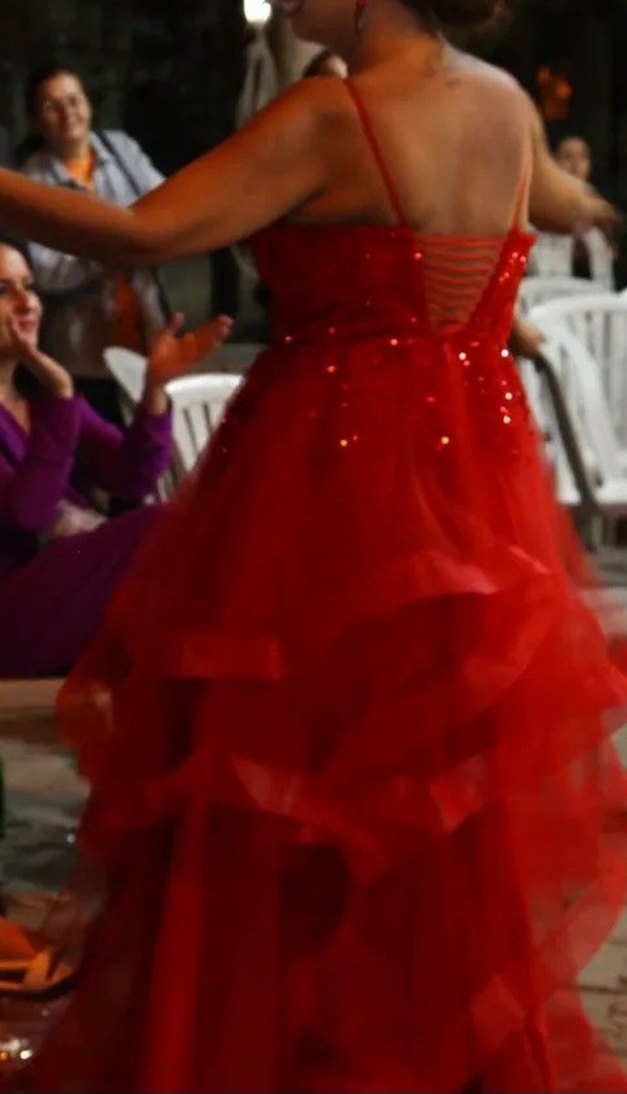 Kırmızı Straplez Uzun Abiye Elbise