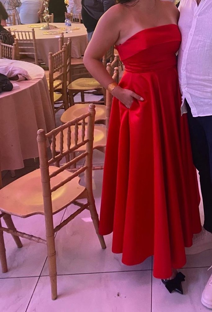 Kırmızı Straplez Uzun Abiye Elbise