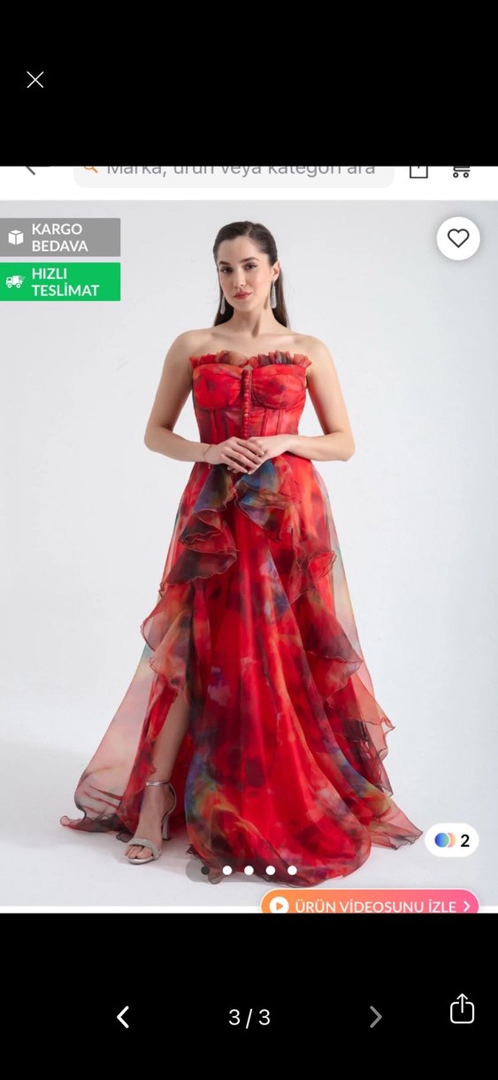Koyu kırmızı tie-dye desenli, straplez ve drapeli uzun kadın abiyesi. Sıfır kol, modern ve avangart parti tarzına uygun.boyum 167, 5 cm topuklu ayakkabıyla tam oluyor. Herhangi bir kusuru yok bir kez mezuniyette giyildi. Accorttan alındı