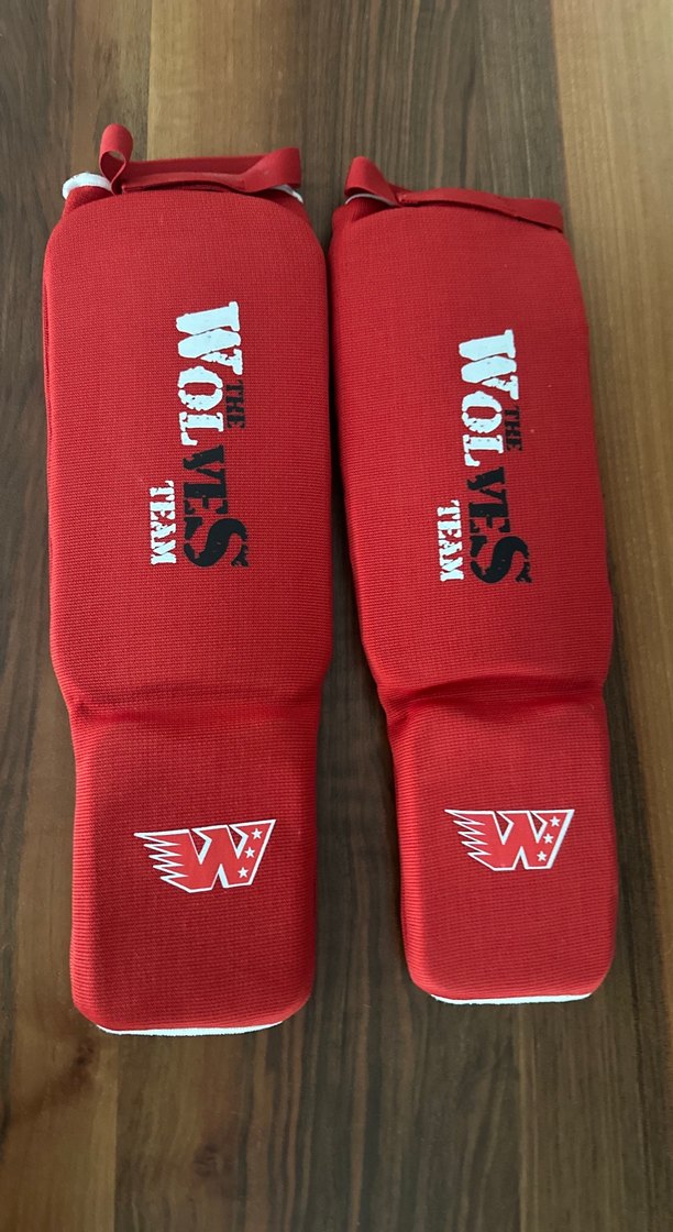 Velcro kapamalı, sentetik kumaştan kırmızı street wear motosiklet dizlikleri. Renkli TEAM WOLVES baskılı. ️