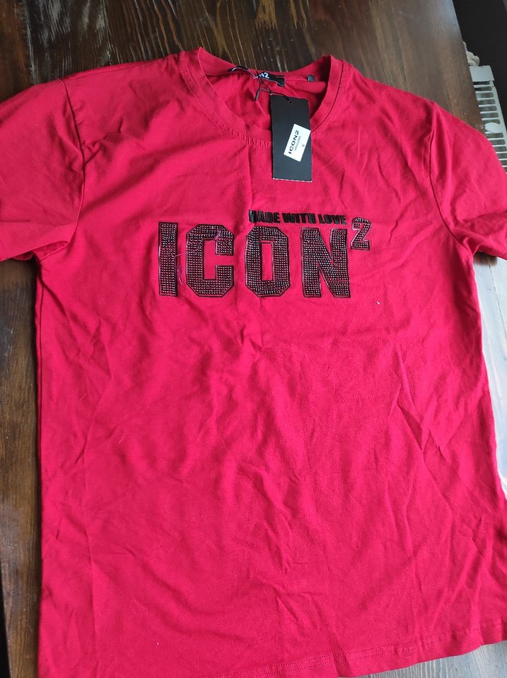 Koyu kırmızı renkte, sokak stili erkek tişört. Önünde 'MADE WITH LOVE' yazısı ve ICON 2 etiket bulunur. Spor ve trend görünüm için ideal. ❤️