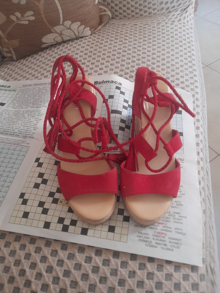 Kırmızı Süet Dolgu Topuklu Kadın Sandalet
