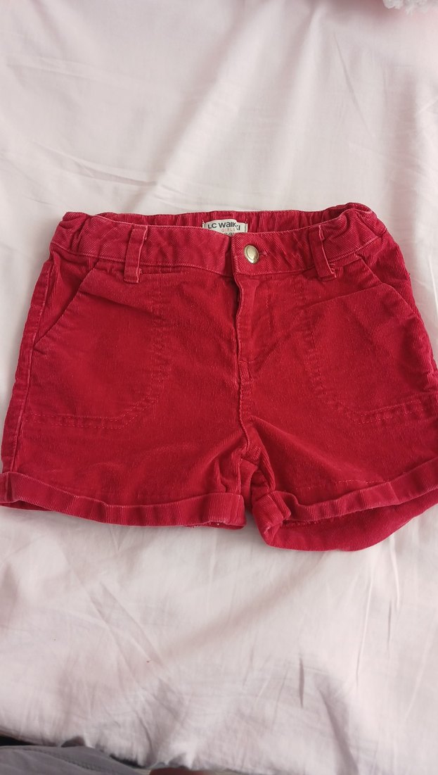 Kızlar için renkli kırmızı süet, düğmeli ve cepli, sokak tarzı dar kesim şort. iyi durumdadır lekesiz
