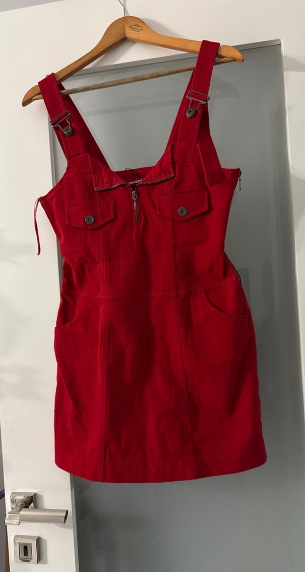 Kırmızı Süet Mini Salopet Elbisep21