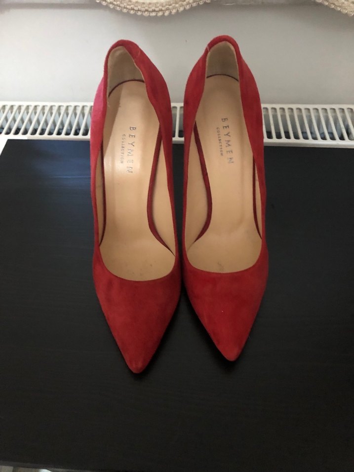 Kırmızı Süet Stiletto Topuklu Kadın Ayakkabı