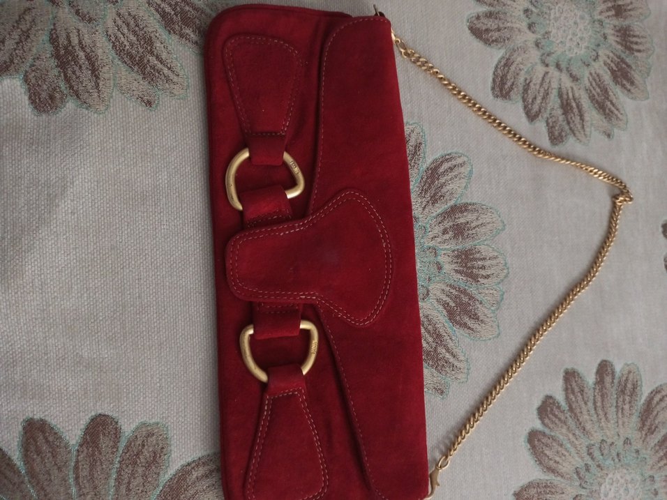 Koyu kırmızı süet kadın çanta, tokalı ve nakışlı detaylara sahip, romantik akşamlar için vintage bohem tarzında.