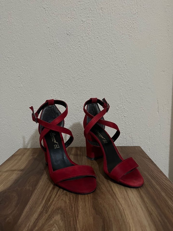 Kırmızı Süet Tokalı Yüksek Topuklu Kadın Ayakkabı