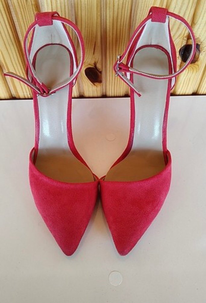 Kırmızı süet ayakkabı, sivri burunlu ve bilekten tokalı kadın stiletto. Çok şık ayakkabı bir kaç kez giyildi sol ayak önünde hafif bir çizik dışında problem yoktur marka temsilidir