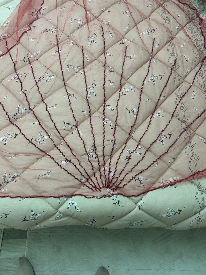 Bu yatak örtüsü, pastel zemin üzerinde zarif bordo nakışlarla sade bir şıklık sunar.