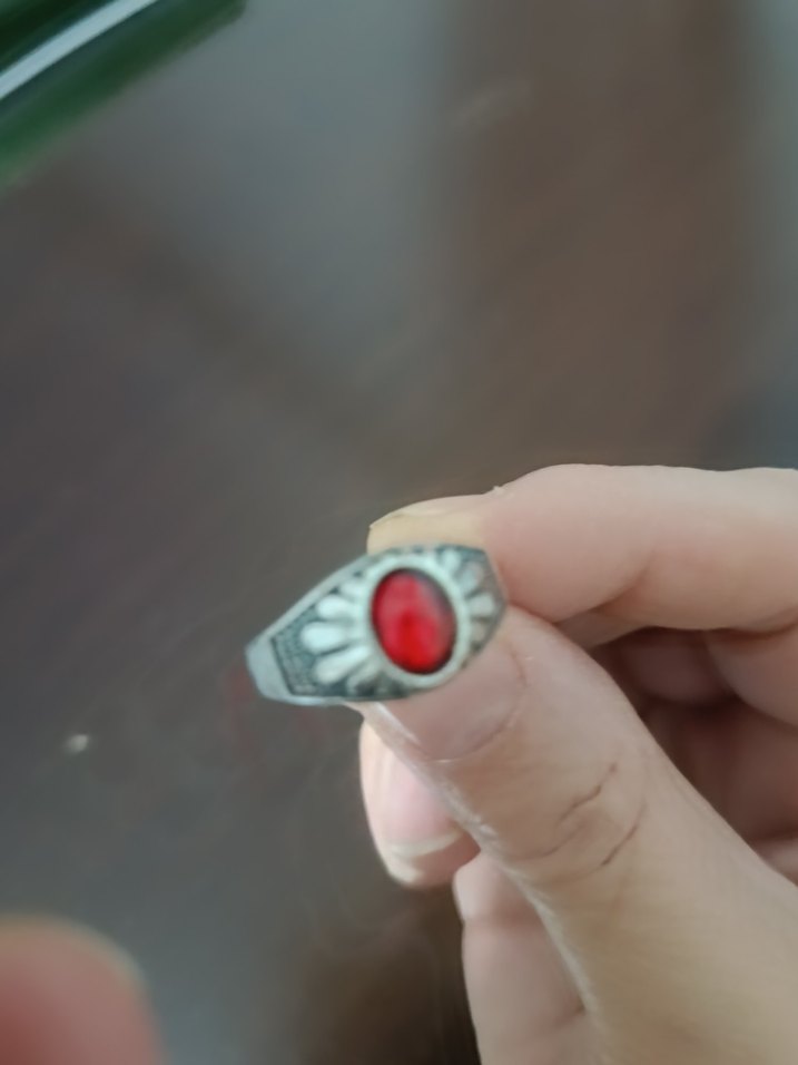 Minimalist tasarımlı, kırmızı renkli taş içeren erkek yüzüğü. Rock punk havası ve karşı kültür stilini yansıtıyor.